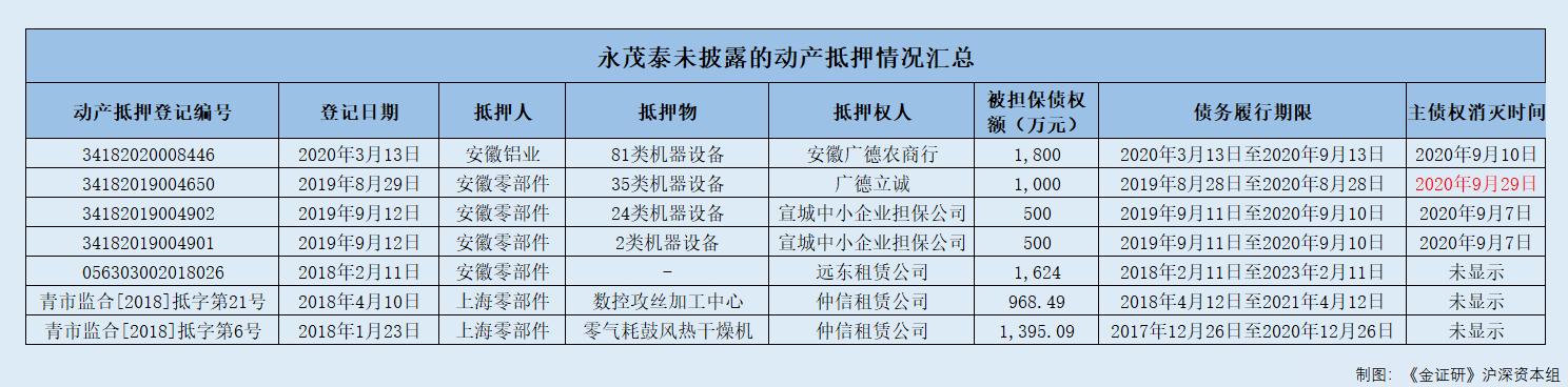 实际上,2018年,永茂泰子公司安徽零部件还存在三次动产抵押,至今未显示注销信息。