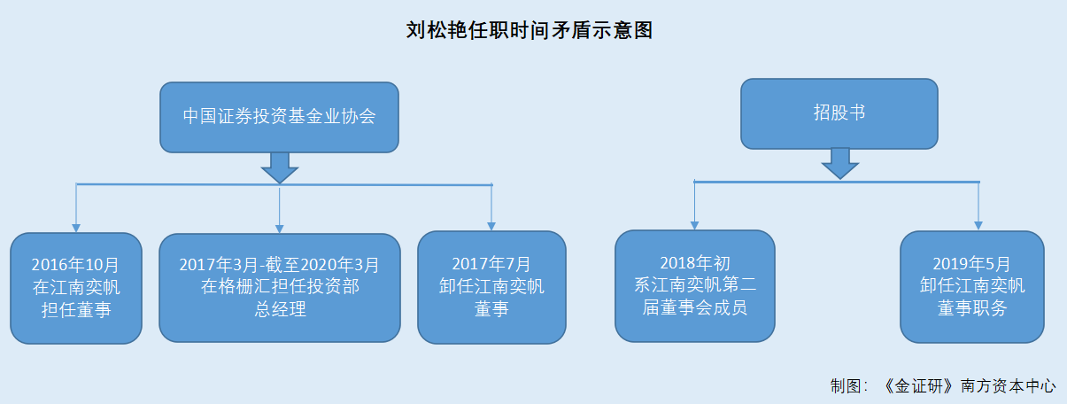 需要指出的是,无论按照中国证券投资基金业协会公示的任职时间,亦或是招股书披露的任职时间,刘松艳或同时在江南奕帆及格栅汇同时任职。