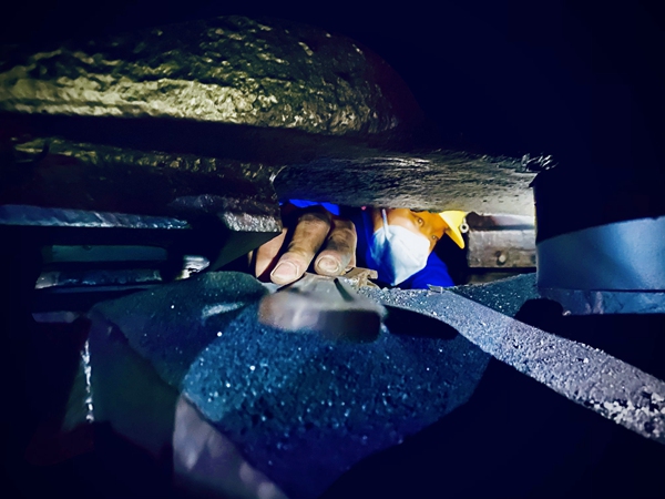 近日,锅炉主操姚李钊在当班期间发现4b送风机震动测点报警,立即联系现场值班员就地检查,发现4b送风机联轴器处振动大。田明得知消息后立即赶到现场进行检查,发现4b送风机联轴器下方有柱销弹性圈脱落,当即汇报工艺技术员申请停运检修。在收到停运指令后,田明马不停蹄地对联轴器进行了拆检,发现2根联轴器柱销断裂,就立即更换上新的联轴器柱销。