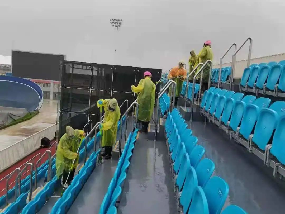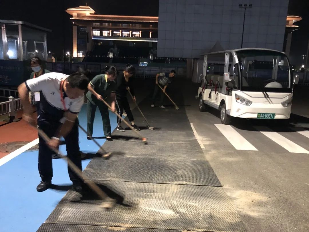 后勤保障工作人员 严格落实疫情防控任务 扫码测温,做好疫情防控 全面检查 消除隐患 保洁人员认真落实消杀清洁任务 打造干净整洁的场馆环境