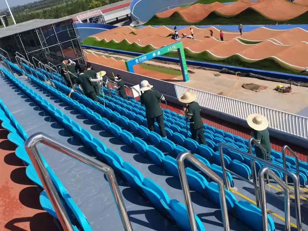 去年以来,集团公司不仅承担了十四运会马术及小轮车比赛项目场馆的建设,也一直在为赛事的顺利进行相应的准备工作——基建公司全力提升道路质量,提升照明;园林公司对马术小镇景观绿化改造提升;市政公司为场馆全力保障供水需求,并对涉赛市政道路与导航标识进行安装提升…… 为认真落实十四运会服务保障工作的要求,为观看赛事的群众提供更为便利、舒适的条件,集团公司响应新城号召,先后共抽调各单位、子公司百余人前往现场,明确各自岗位分工,细化工作项点,全力保障马术和小轮车场馆服务工作。