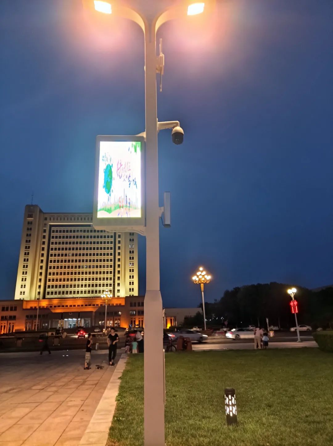 银河照明参与项目:【党史学习教育】东营提升新世纪广场智能化水平 智慧灯杆便民惠民