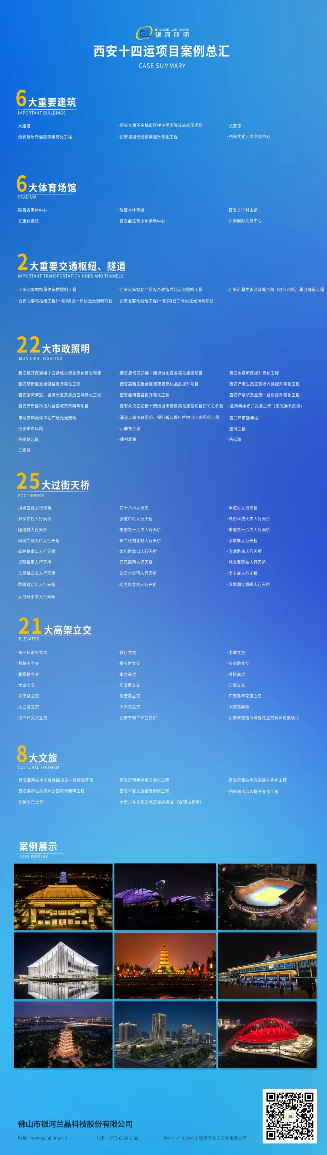 金秋九月,古城西安迎来全运盛会。第十四届全运会于9月15日开幕,西安市作为第十四届全运会的主会场城市,不断发展完善民生领域和体育健身领域等。银河照明以美好的光感受积极助力全运会,在重要建筑、体育场馆、重要交通枢纽、隧道,市政照明、过街天桥、高架立交桥、文旅项目等七大方面为这场备受瞩目的体育盛会贡献出自身的一份力量。