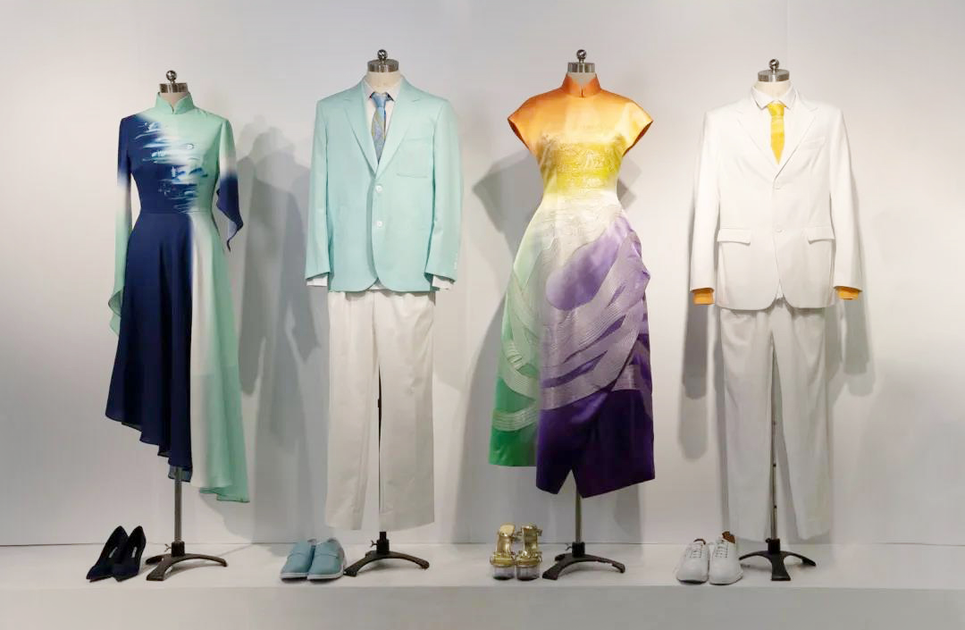 吴海燕说:“今天我们设计这样一套服装,是希望在万众瞩目的焦点时刻,通过杭州亚运会礼仪着装,向现场以及屏幕前的各国观众展现出主办国和主办城市的民族文化、时代风貌及韵味风采。”