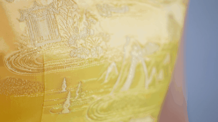 “在这个图案中,有十多种肌理效果,我们希望把传统织造的精髓,用现代高科技的织造工艺体现出来,因此花费了很大功夫。”