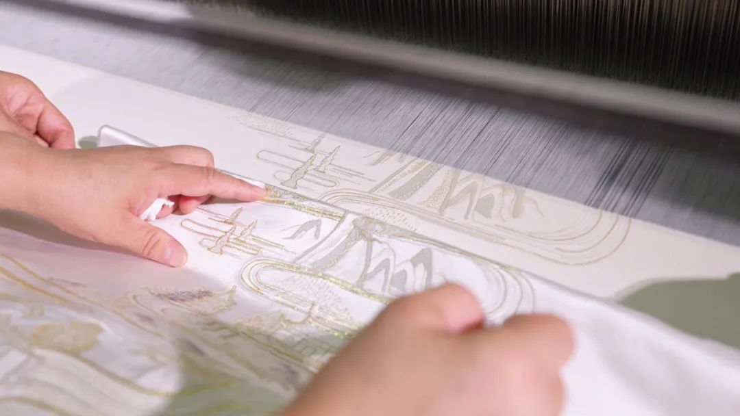 光是提花的样式,团队就花了三个月的时间,前后试了八种,只为寻求完美肌理呈现出的杭州山水。