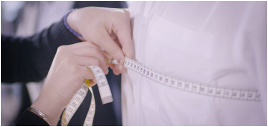 量体师进行数据采集,一共要采集19个部位22个尺寸数据。量体时自然放松配合量体师数据采集,自然放松才能避免误差。