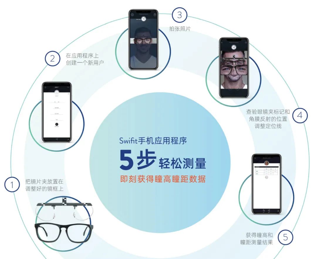 酷龄专研手机APP——SWIFIT,只需拍摄一张照片,就能获得可靠的瞳高和瞳距测量数据,其标准化的操作流程,能够最大限度地降低验配人员经验/技能对装配误差的影响,并且由此获得的数据精度能与酷龄系列镜片设计完美匹配,从源头上减少退货率及投诉。