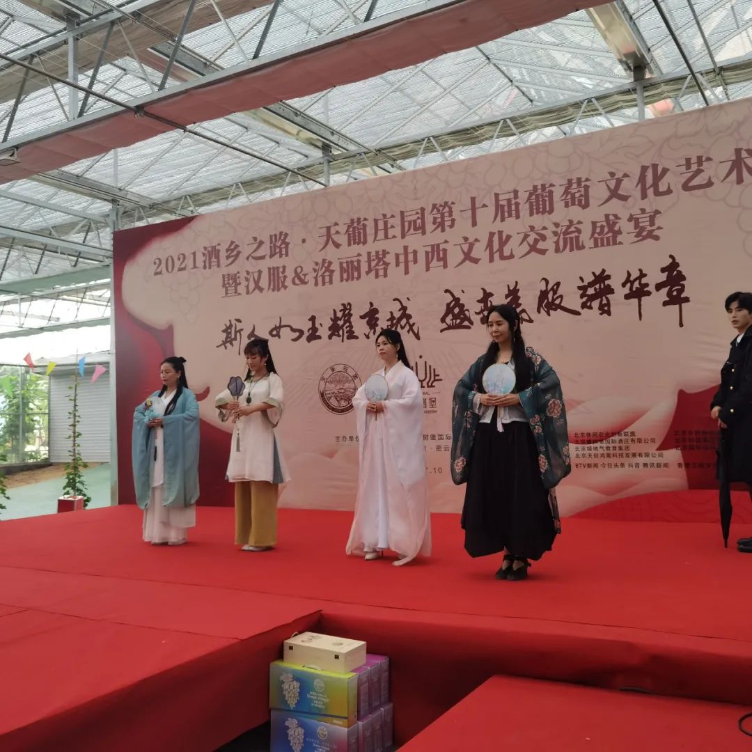 7月10日,密云区巨各庄镇酒乡之路的葡萄主题产业园---天葡庄园隆重举办第十届葡萄文化艺术节。创新创意,以葡萄产业主题为核心,融合汉服文化元素,挖掘“丝绸之路”开创历史过程中张骞从西域引进葡萄种植的历史故事及衍生文化,整合北京禾动力科技有限公司的互联网优势,在“重走丝绸之路”百人沉浸式剧本中展示汉服及洛丽塔服装元素,为游客创造穿越时空的休闲体验,探索打造酒乡之路农旅文融合发展的精品品牌活动,实现产业+旅游+文化的有机跨界融合。
