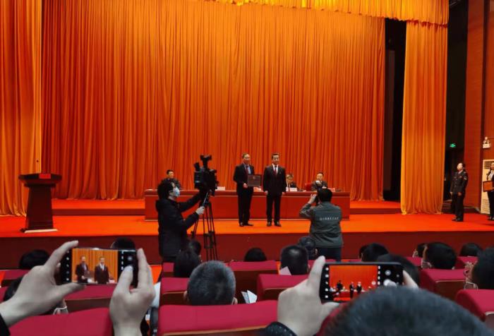 【企迪网讯 编辑/王娟】于2022年2月19日上午召开的益阳市质量大会现场,湖南桃花江竹材科技股份有限公司荣获“益阳市市长质量奖”,公司董事长薛志成先生代表上台领奖,市人民政府市长陈竞先生亲自为其颁奖。