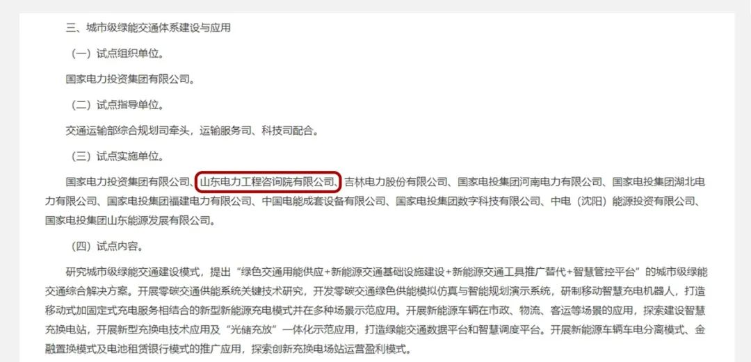 自2022年下半年,国家电投战略部会同山东电力工程咨询院有限公司(以下简称“山东院”),牵头开展国家电投交通强国建设试点申报,高质量编制《交通强国建设国家电投集团试点实施方案》(简称《实施方案》),经交通部强国办、相关省市交通厅专家及交通领域各专业顶级专家联合评审并获得高度评价。