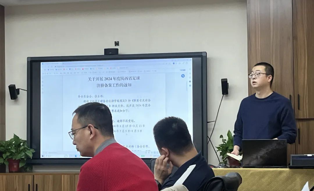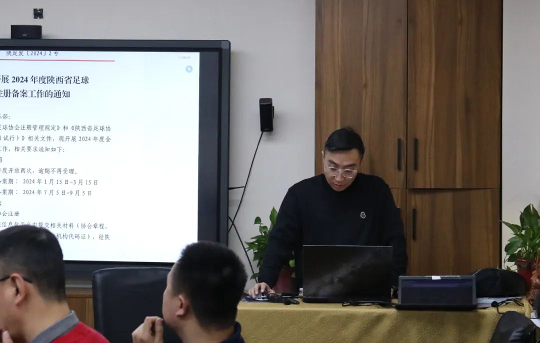 会议首先由陕西省足球协会注册负责人解读了2024年足球运动员注册相关流程,陕西省足球运动管理中心青少科负责人介绍了2024年陕西省青少年赛事计划。