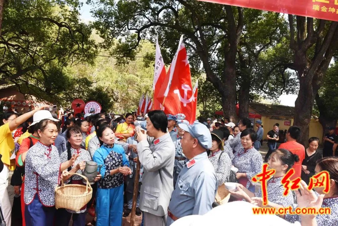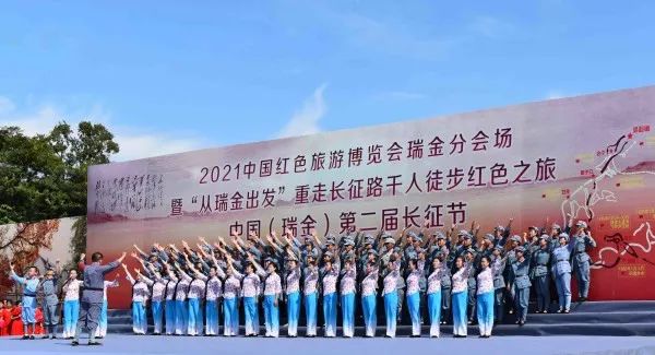 10月10日,2021中国红色旅游博览会瑞金分会场“从瑞金出发”——重走长征路千人徒步红色之旅暨中国(瑞金)第二届长征文化节隆重开幕。三月雨受邀参加了本次活动,与众嘉宾一起踏上长征之旅,共同追寻87年前的红军足迹。 来自北京、天津、南昌等地曾在江西瑞金战斗过的革命后代、红军将士亲属,以及文化、旅游、红培机构和周边学校师生与群众共千余人参加了本次盛会。 红色文艺工作者在演唱《八月桂花遍地开》等歌曲 瑞金,这块烙印人民共和国前进步伐的红土地,这块承载中国共产党人初心和使命的红土地,这块记录革命老区沧桑巨变的红土地,有太多的初心印记,值得我们去探寻、去感悟。 1931年11月7日,中华苏维埃第一次全国代表大会在这里举行,宣告成立中华苏维埃共和国临时中央政府,中国共产党人在瑞金开启了红色政权建设的探索。1934年10月10日,中共中央、中革军委率领中国工农红军第一方面军,也是在瑞金这片土地,迈出了万里长征的第一步。 毛主席(特型演员扮演)等红军指战员在喝群众送来的茶水 为了贯彻落实习近平总书记在考察江西时提出的“要从瑞金开始追根溯源,要深刻认识红色政权来之不易”的讲话精神,瑞金市红色文化传承协会举办了本次“从瑞金出发”——重走长征路千人徒步红色之旅暨中国(瑞金)第二届长征文化节活动,旨在以多种多样的活动形式,再现那一段历史的苦难与辉煌,传承永不褪色的长征精神。 革命后代、红军将士亲属在参观博物馆时合影留念 作为红色文化传播者,三月雨高擎时代责任,借力多元化的展陈内容和形式,用活红色文化资源,精心打造了众多特色鲜明的红色文化前沿阵地。通过对红色圣地的一次次探访与亲历,三月雨人有了更深厚的积淀与感悟。在新时代的新征程中,三月雨将用更有温度更有情怀的展陈作品,让红色文化焕发出新的魅力。