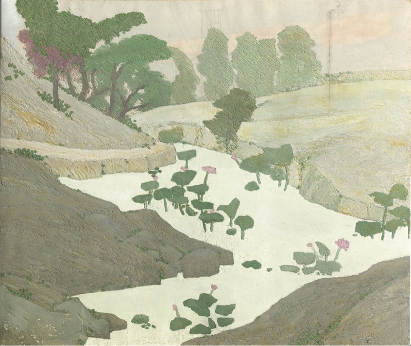 《东庄二十四景》不单单是沈周创作的二十四幅传统水墨作品,更是他为笃友吴宽的私家园林所留下的一份对文人生活的向往和寄托。这二十四景生动地展现了江南吴地的园林艺术风貌,以简明的构图和明快的线条给人以身临其境的画面效果。肖谷全新创作的《东庄新语》则以油画中的明暗色块代替水墨的游丝线条,展现出另一番风情的园林情趣。同样的二十四幅作品,却又是不同的创作。