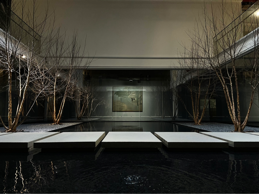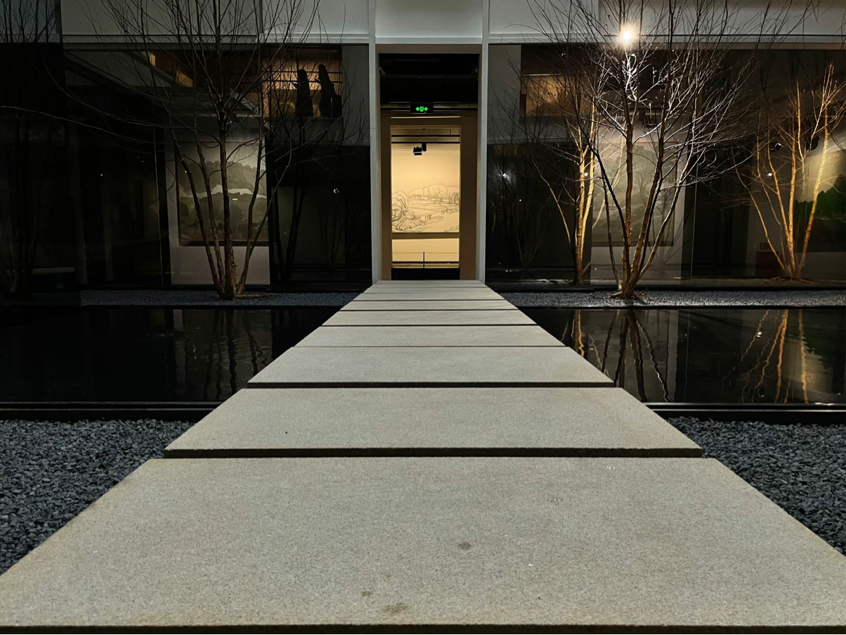 除了作品本身,此次展览地点静安雕塑公园艺术中心的展厅中庭还装置了“镜园”,使其与“东庄”融入为一体,让“肖谷——东庄新语”艺术展成为一场传统园林与现代园林、东方园林与西方园林的对话。让观者能在步入展厅的那一瞬间,就能被艺术家所营造的江南园林意象所包裹,进而沉浸其中感受江南吴地文人包容的气度以及其特有的艺术趣旨。