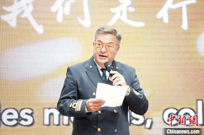 本次电影节合作方歌诗达邮轮公司代表、翡翠海岸号船长CarmineMaddaloni在开幕式上致欢迎词,他特别指出这是有史以来首次在欧洲邮轮上举行大型中国文化活动,并对欧洲时报文化传媒集团表示感谢。