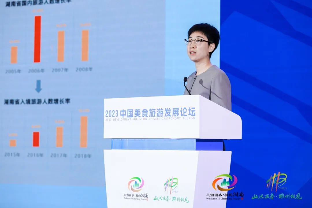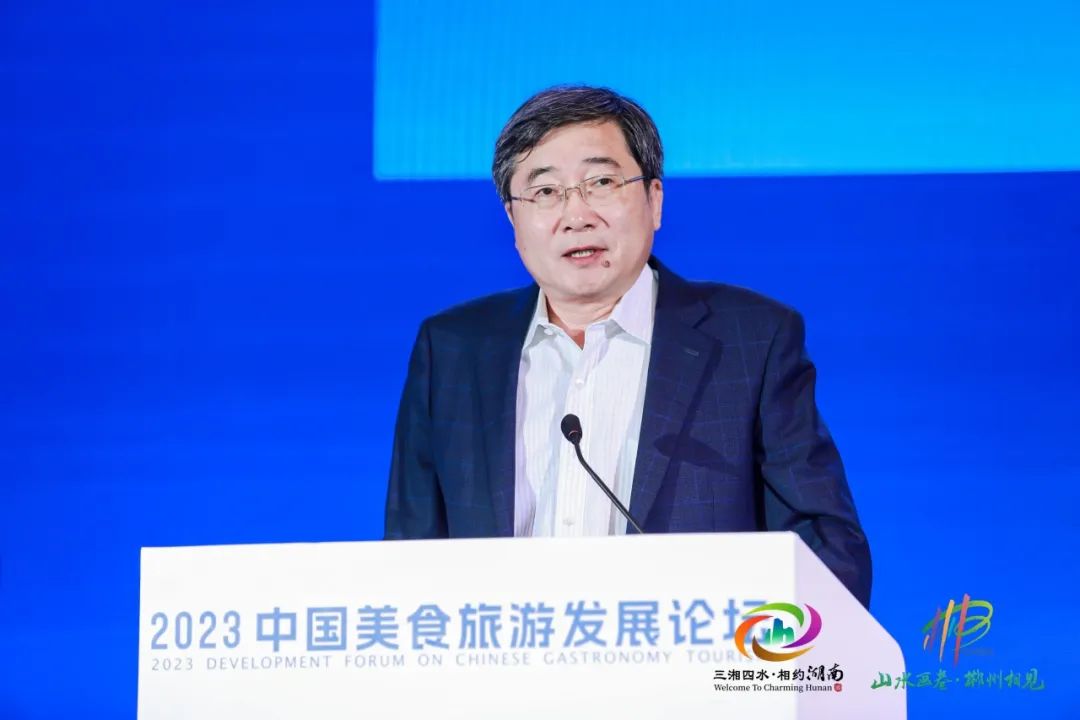 论坛上,中国旅游研究院院长戴斌发布《美食新动能•旅游新生活——中国美食旅游发展报告(2023)》,中国旅游研究院李惠博士发布《湖南美食旅游发展报告》。