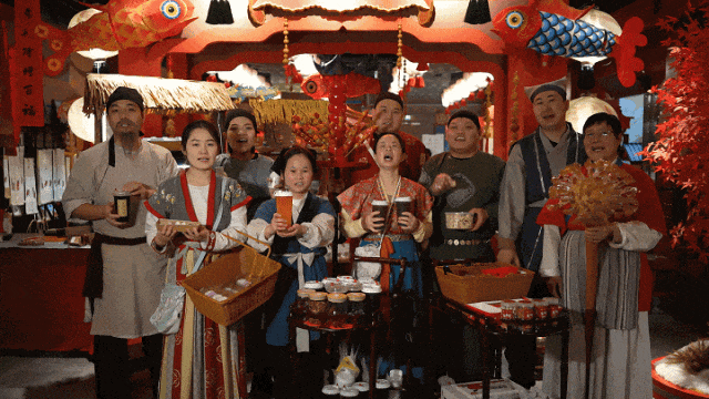 南腔北调的吆喝叫卖声,主打一个“接地气”。游商们或与游客闲聊,或讲着长安城中的新鲜事,您如果在街区偶遇他们,一定要向他们打听今儿城内的趣闻轶事。 还有张小敬同款、用吸管吸着吃的『火晶柿子』,备受小朋友喜欢的『手工吹糖人』,焦香可口的人气王『酥肉』等等……